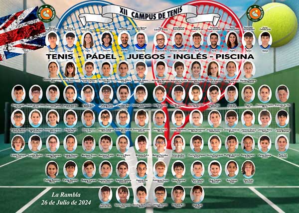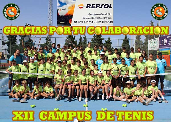 El XII Campus de Tenis toca a su fin, un año más, y van 12, el Campus ha sido todo un éxito, agradecer a todos los padres y madres la confianza que una vez mas han depositado en los organizadores del Campus, también agradecer a las instituciones, Ayuntamiento de La Rambla y Diputación de Córdoba, que nos ayudan a financiar esta actividad tan importante para nuestro club y como no agradecer al máximo a las empresas de La Rambla , (Gasóleos Energéticos del Sur S.L. , Mecanizados e Industrias Leo S.L., Almacenes Covi y Vibrantz , firmas comerciales de Rupi 1980 S.L. y CRM S.L.) que son los principales valedores del Club a nivel de patrocinio y sin los que no sería posible hacer la cantidad de eventos que hacemos.