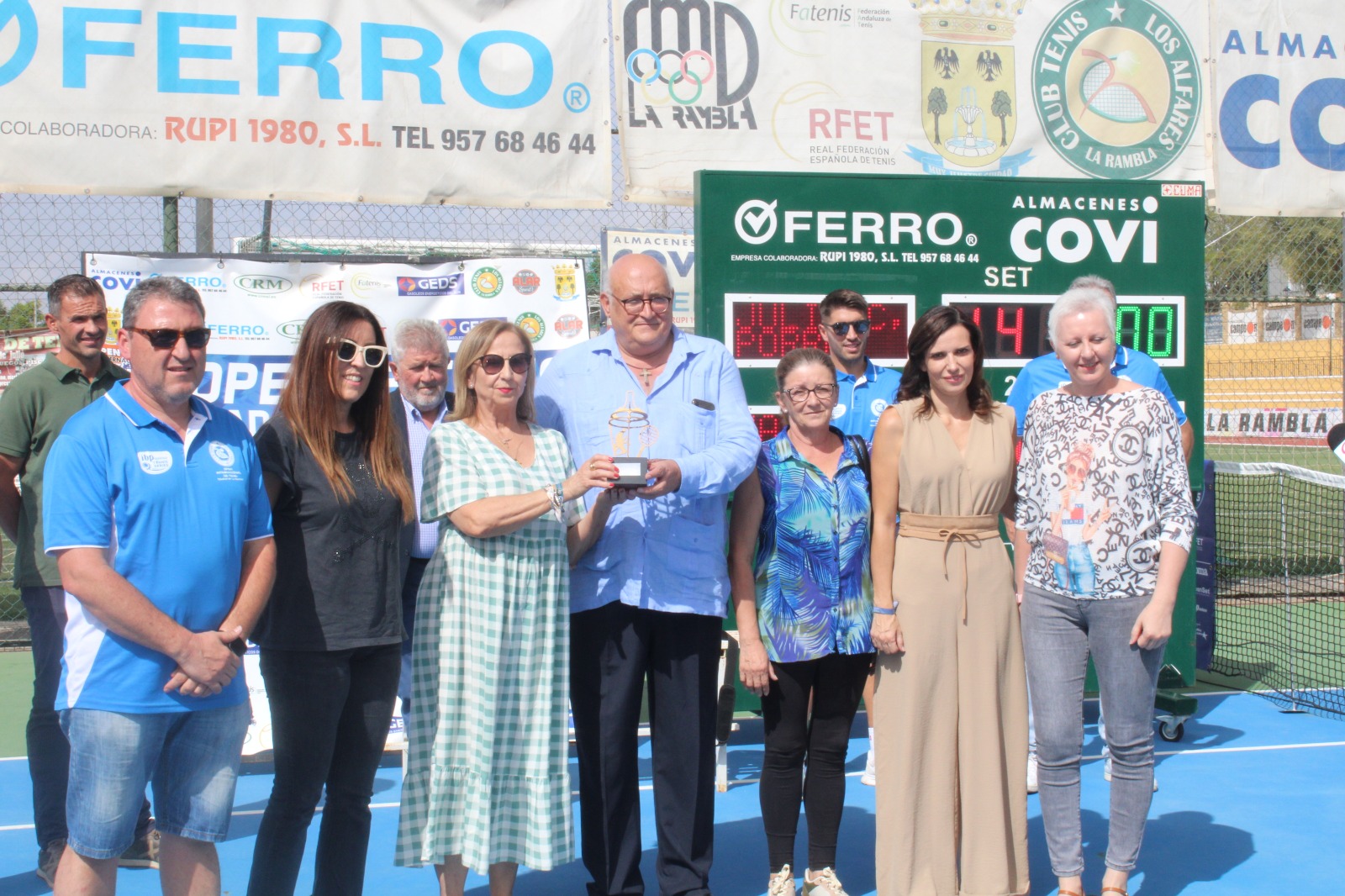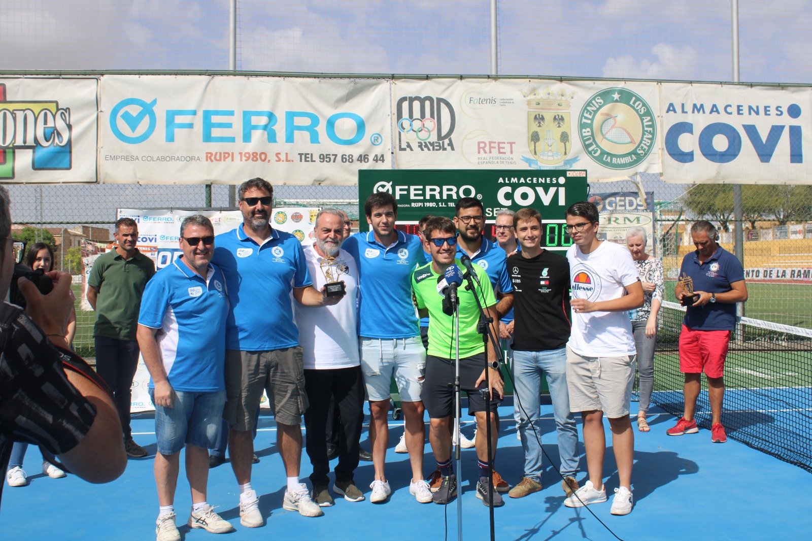 Una vez finalizado el partido, en la pista central, se llevo acabo la ceremonia de entrega de trofeos a los finalistas del XI OPEN DE TENIS INTERNACIONAL «CIUDAD DE LA RAMBLA» y nombramientos de socios de Honor.
